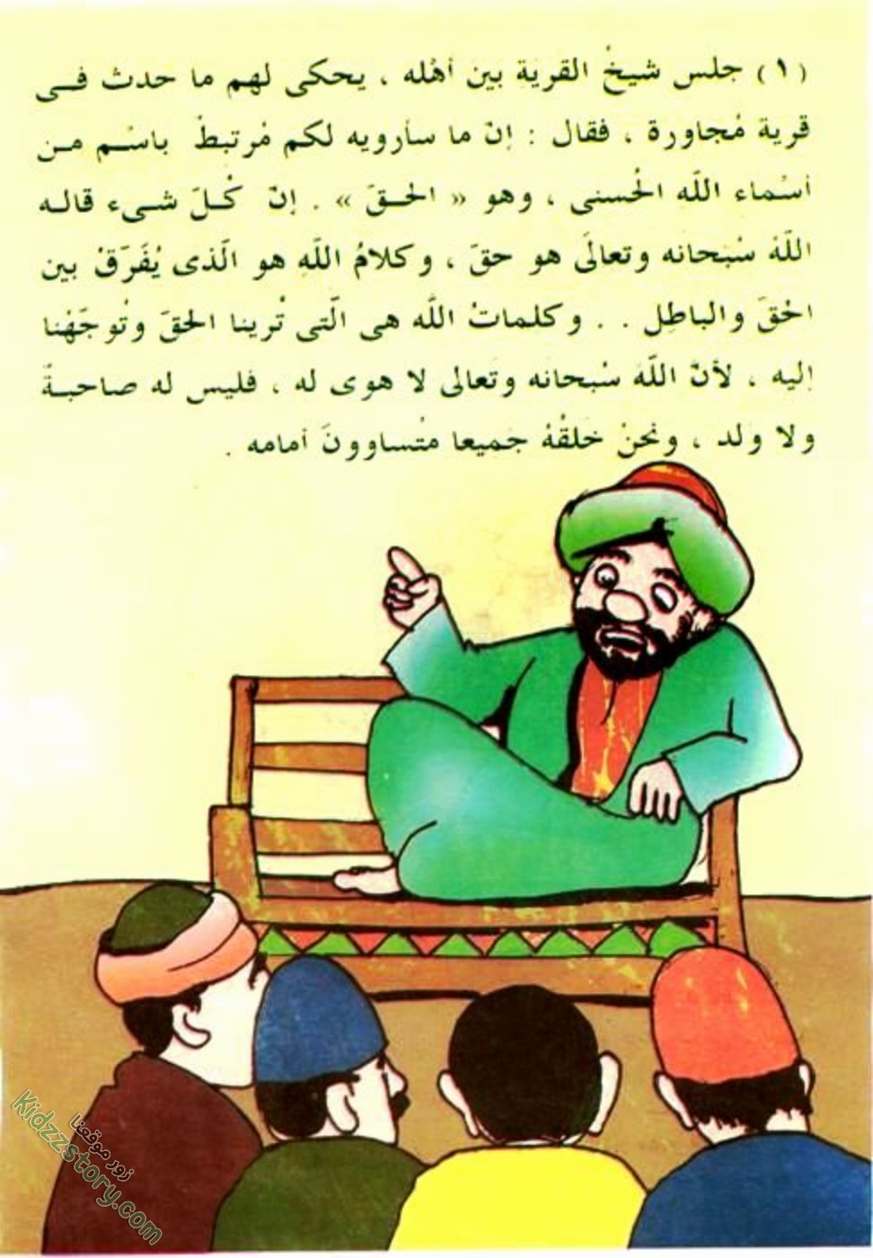 يجتمع أهل القرية حول شيخهم الحكيم، ليستمعوا إلى حكاية تحمل في طياتها درساً بليغاً عن اسم من أسماء الله الحسنى، وهو “الحق”. من هنا تبدأ قصة الأشقاء الثلاثة، التي تروي حكاية ثلاثة إخوة ورثوا عن أبيهم الصالح حديقة غناء، كانت خيراً وبركة على أهل القرية جميعاً بفضل كرم الأب الذي لم ينس أبداً حق الفقراء والمساكين في ثمارها.