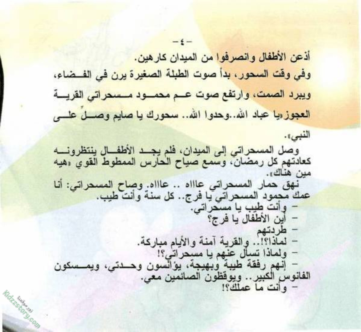 في قصة الحارس والأولاد، يفسد خفير صارم فرحة أطفال القرية في رمضان، فيبتكرون خطة ذكية ومضحكة باستخدام خيال المآتة لتلقينه درساً يغيره إلى الأبد.