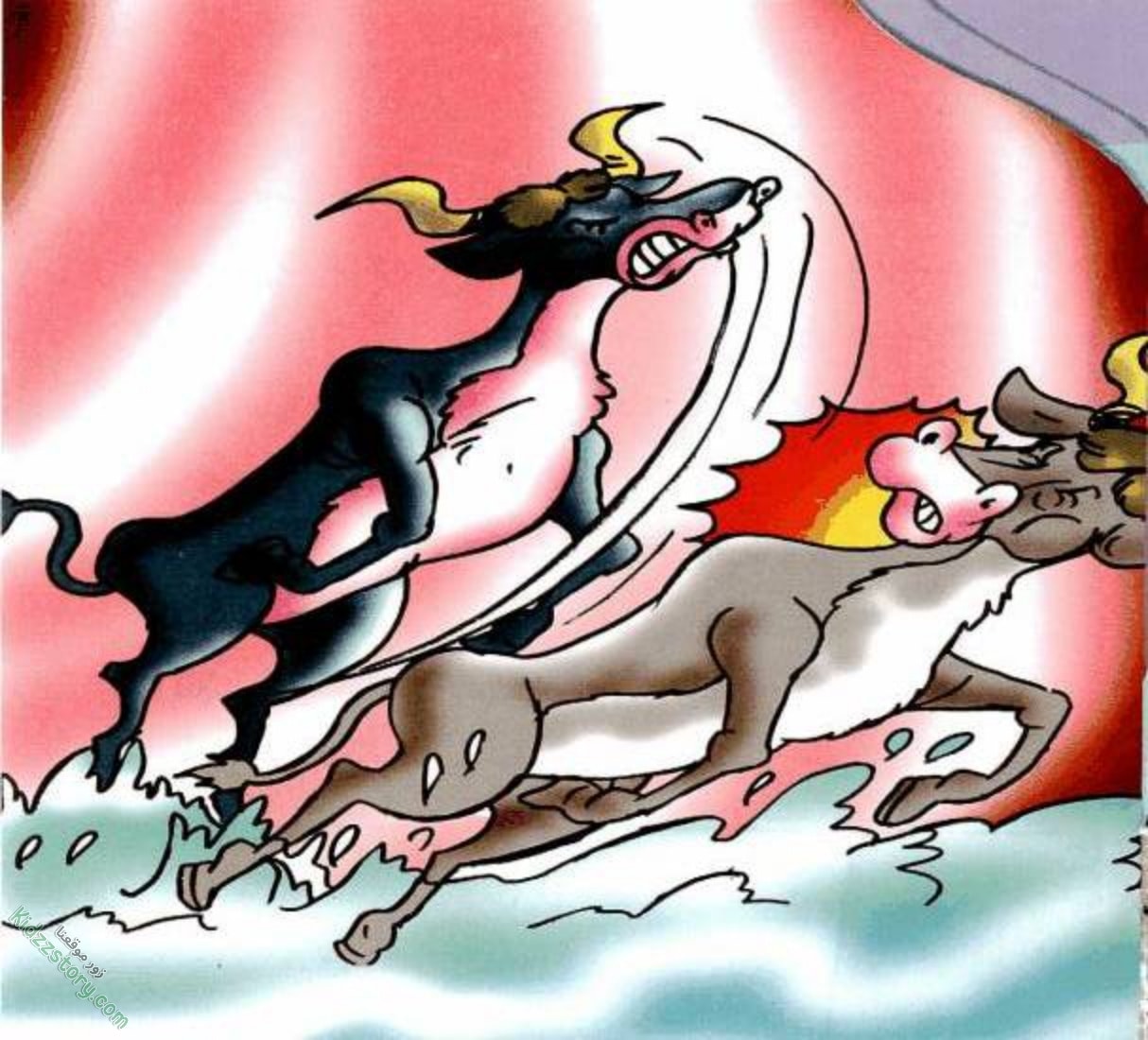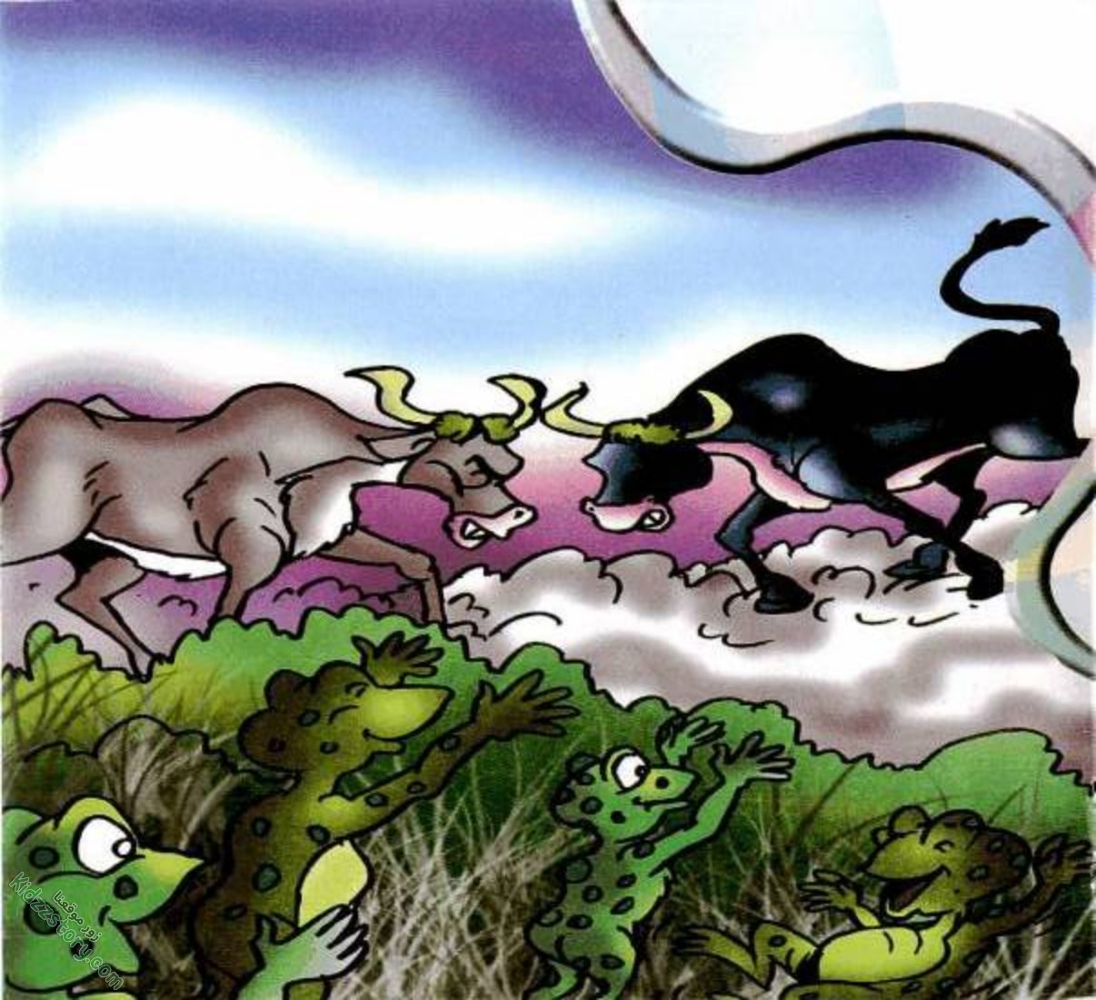 لاحظت ضفدعة عجوز ماكرة هذا التوتر، فقررت أن تحول الموقف إلى تسلية خطيرة. بكلمات قليلة، أشعلت نار الفتنة بين الضفادع، ثم بين الثورين نفسيهما، دافعة إياهما إلى معركة عنيفة ليثبت كل منهما أنه الأقوى. تحولت ضفة النهر الهادئة إلى ساحة قتال، والضفادع تقفز وتشجع بحماس، غير مدركة للمصير المأساوي الذي ينتظرها. فمن سينتصر في هذه المعركة التي أججها الغرور؟ والأهم من ذلك، من سيدفع الثمن الحقيقي في النهاية؟ انضموا إلينا في قصة جزاء الغرور لتكتشفوا أن إشعال الخلافات قد يؤدي إلى عواقب وخيمة على الجميع.