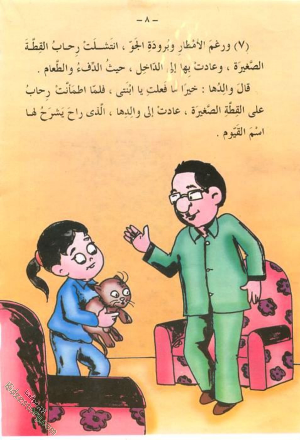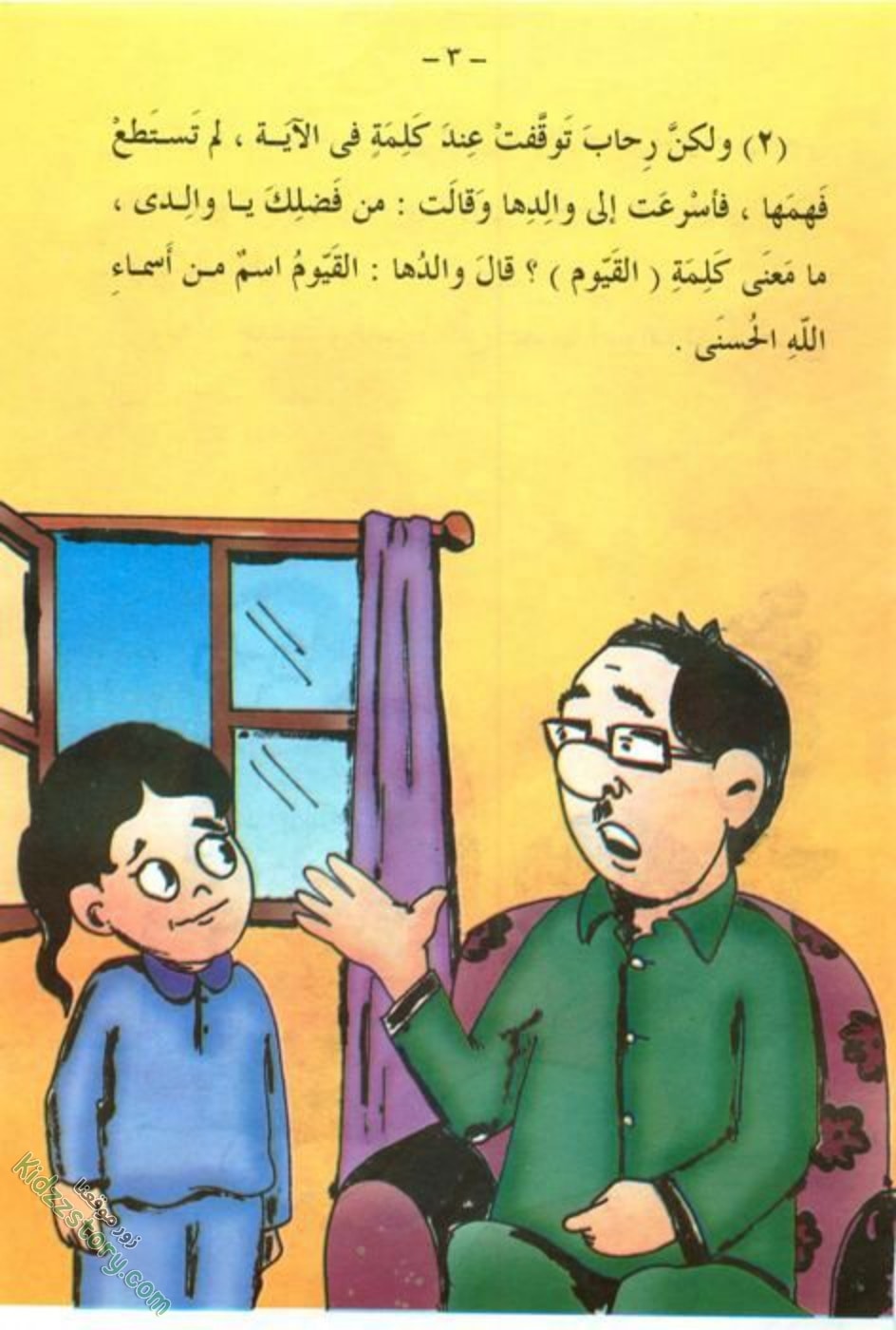 في قصة ليلة باردة، تدفع الرحمة فتاة لإنقاذ قطة في ليلة عاصفة، لتكتشف في حوار دافئ مع والدها معنى اسم الله “القيوم” الذي يرعى الكون كله ولا ينام.