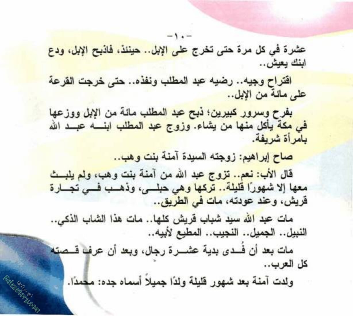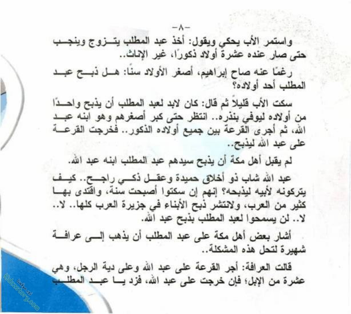 في قصة يوم تعطل التلفاز، يجتمع الأولاد حول والدهم في ليلة مملة، فيروي لهم حكاية مدهشة عن جد الرسول – عبد المطلب – ونذره العظيم الذي كاد يودي بحياة ابنه.