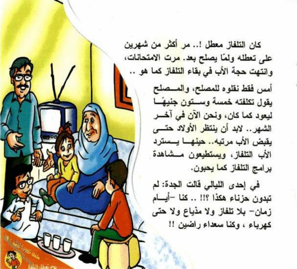 ماذا يحدث عندما يتوقف مصدر التسلية الرئيسي في المنزل عن العمل؟ في قصة يوم تعطل التلفاز، تجد أسرة نفسها في مواجهة الملل بعد أن أُخذ جهاز التلفاز للإصلاح. وبينما يشعر الأولاد بالحزن، تقترح الجدة أن السعادة كانت ممكنة في الماضي بدونه، فيقرر الأب أن يعيد إحياء عادة الأجداد ويأخذ عائلته في رحلة عبر الزمن بحكاية شيقة.